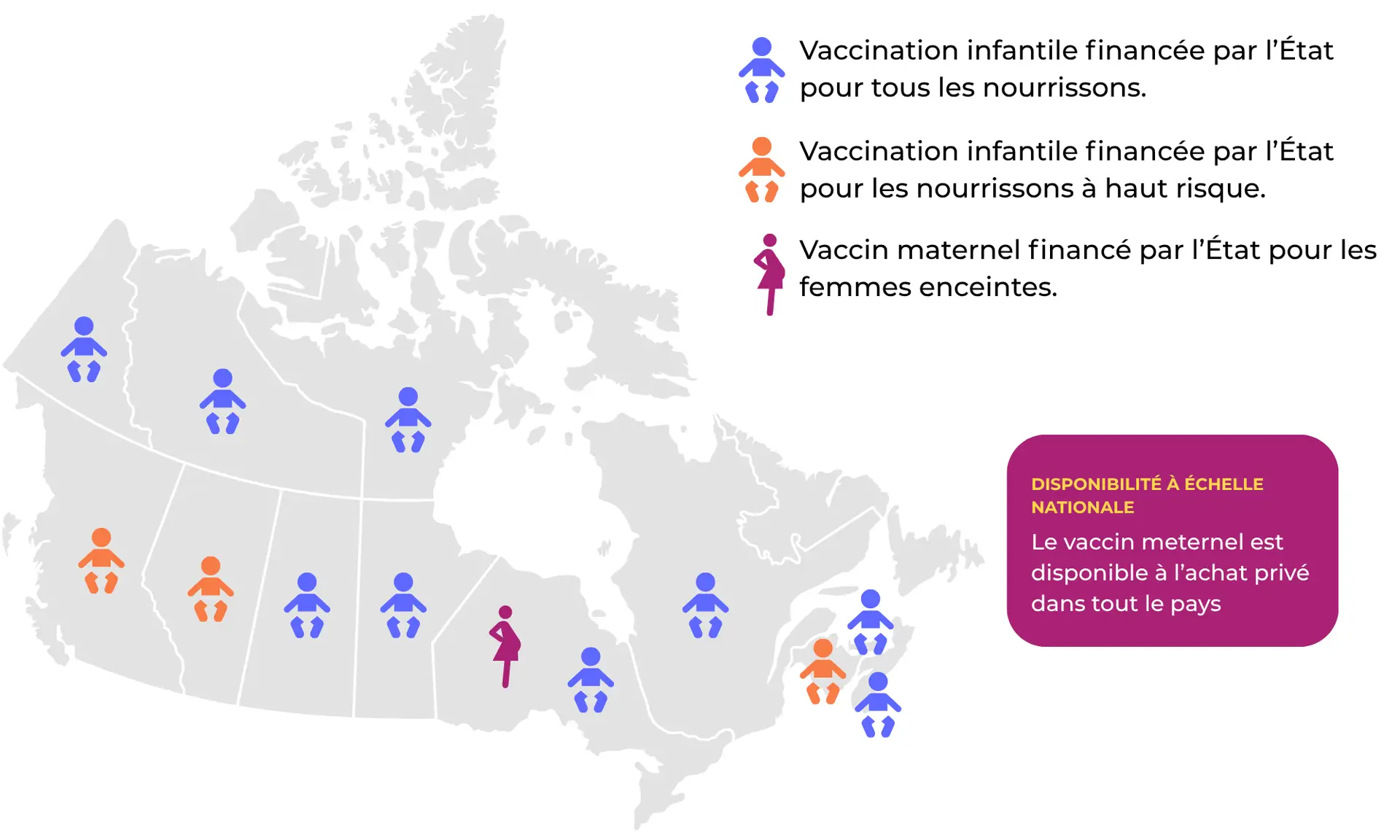 Les programmes de protection contre le VRS varient d’une province à l’autre. Consultez un professionnel de santé pour connaître les programmes disponibles dans votre région.