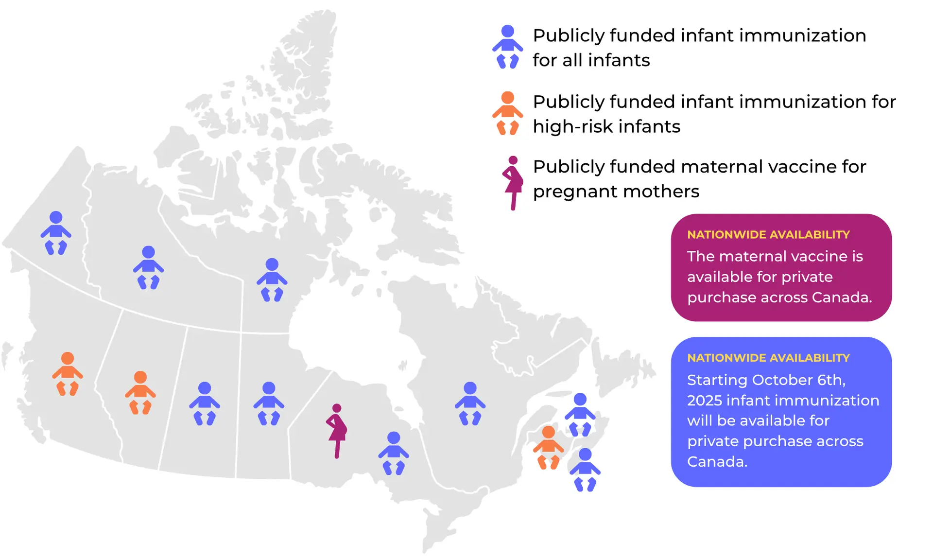Ontario is publicly funding RSV infant immunization—nirsevimab (Beyfortus). All infants up to 8 months in age and high-risk children up to 24 months of age can receive the immunization free of charge for the 2025-2026 season.